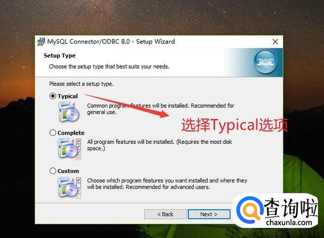 在弹出的安装类型界面中选择Typical类型,如下图所示