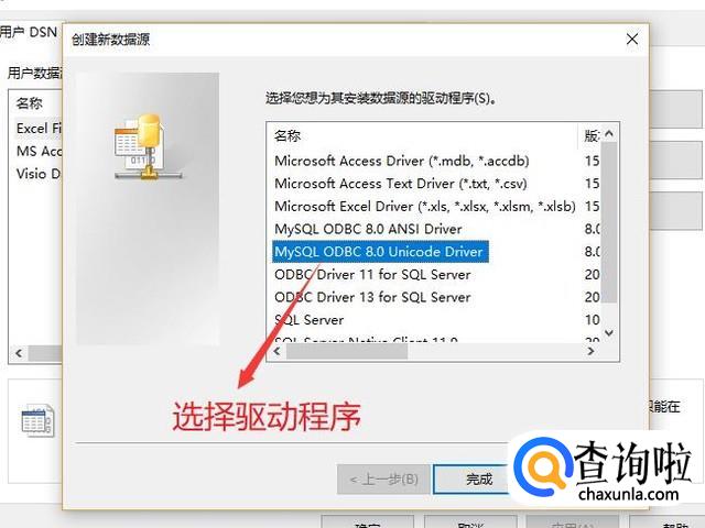 然后进入创建数据源界面,这里选择MySQL ODBC 8.0 Unicode Driver选项,如下图所示