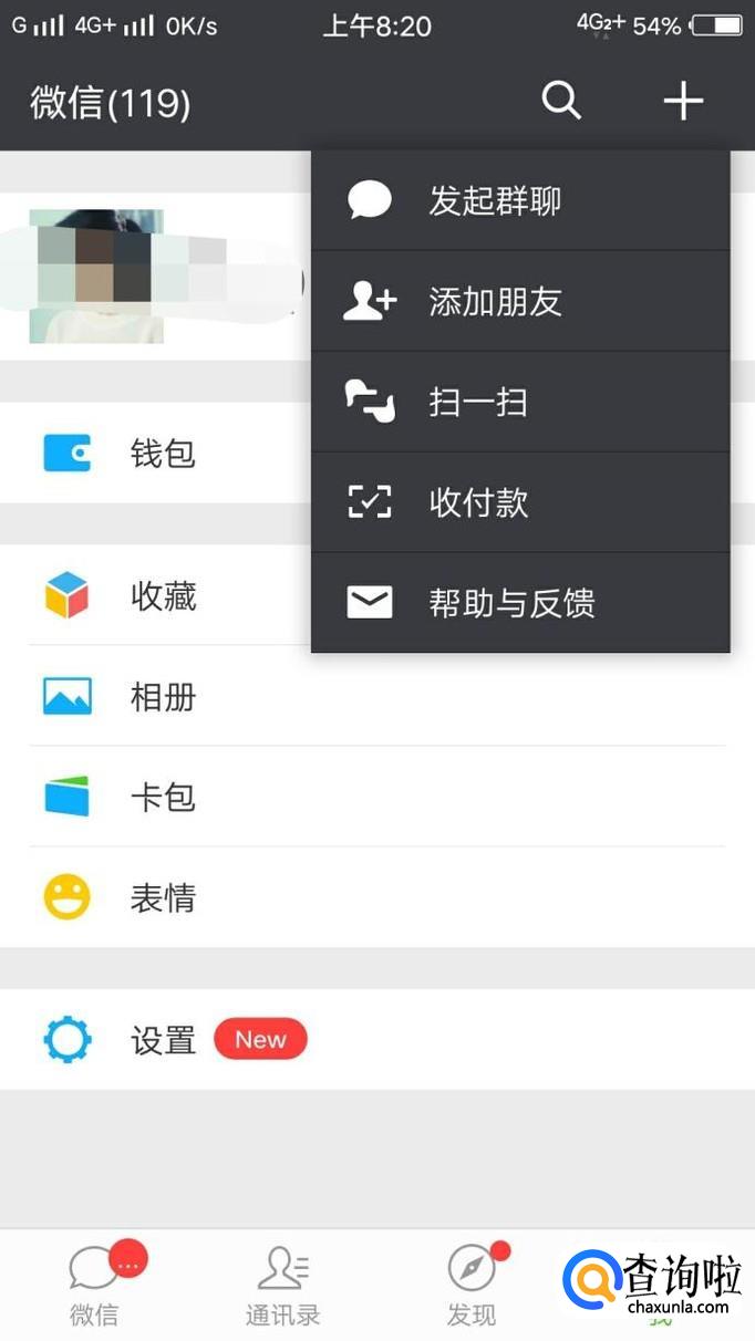 首先打开微信,点开右上角“+”的界面,找到添加好友。