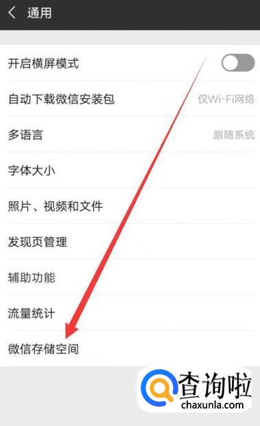 进入之后,点击“微信存储空间”,如图所示。