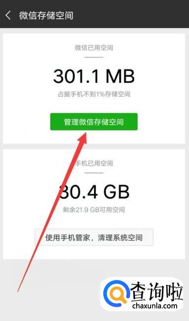 进入之后,点击“管理微信存储空间”,如图所示。