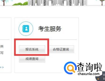 接着,我们找到考生服务这一模块,选择报名系统。无论之前有无注册,想要考试都得需要重新注册。