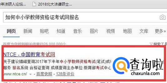 首先,我们打开任一浏览器,输入中小学教师资格证考试网报名,选择下方第一个网页——中国教育考试网。