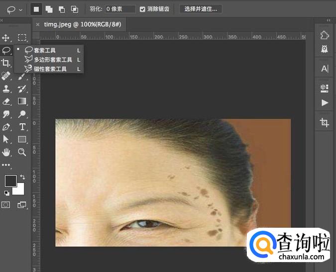 打开电脑中的PS软件,拖入需要进行处理的图片,在工具栏中选择“套索工具”
