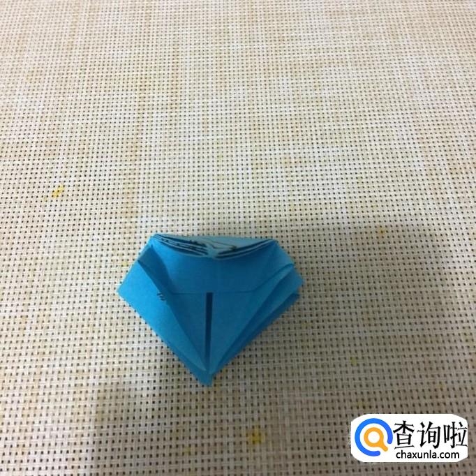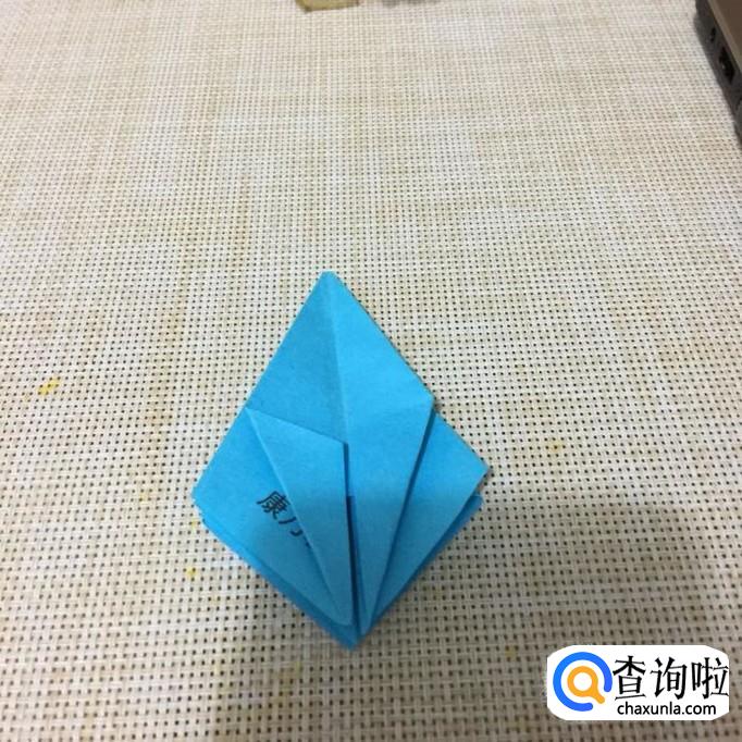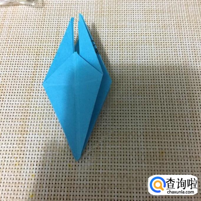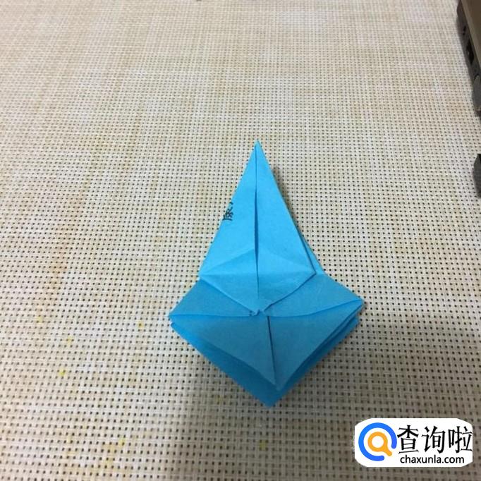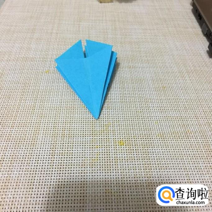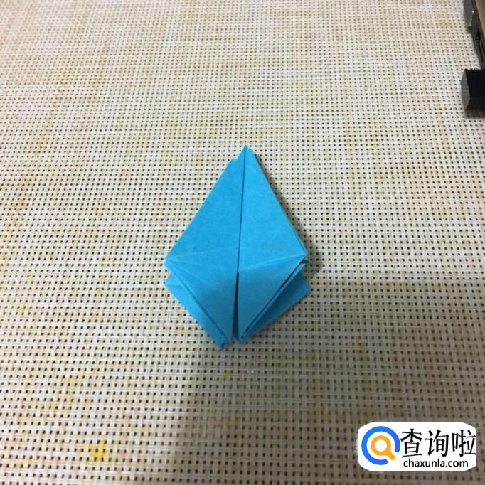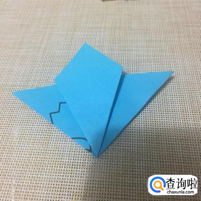 然后把底角往内侧折,接着把顶角往下折,如下图所示。