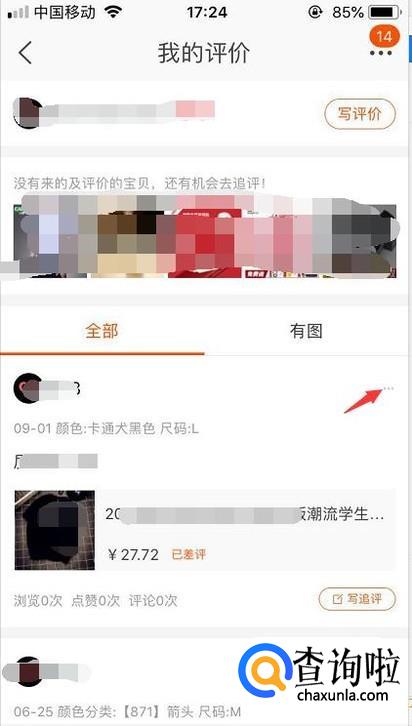 然后在我的评价里面找到想要修改评价的商品,点击商品的右上角小圆点。