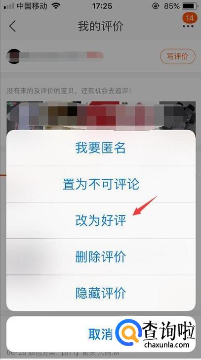 接着系统会弹出几个功能,有删除评价、匿名评价和改为好评等等,我们点击一下改为好评。