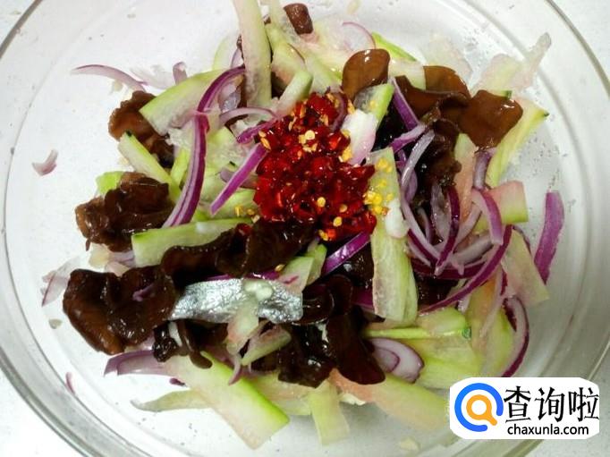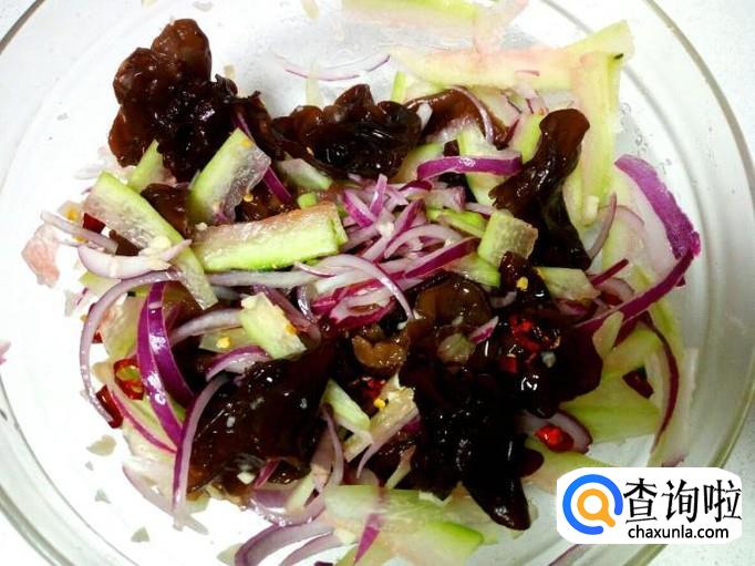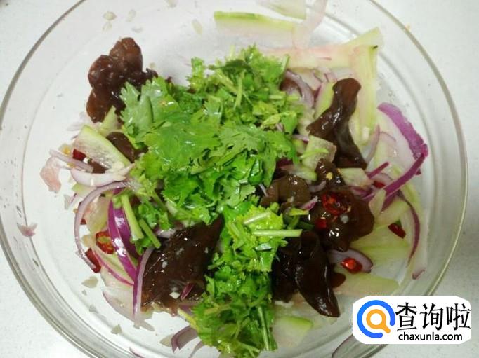 西瓜皮 3块(200克),木耳 适量 ,圆葱 半个,香菜 适量。
