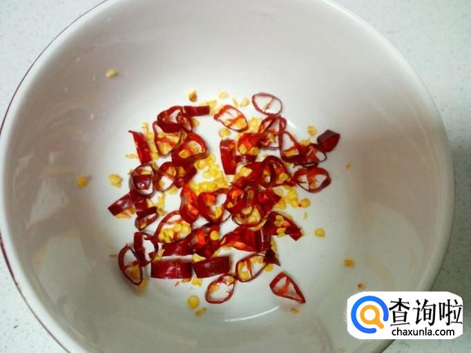 红干椒用水清洗干净,控干水分,切成小段。蒜去皮,用水清洗干净,控干水分,切成末。