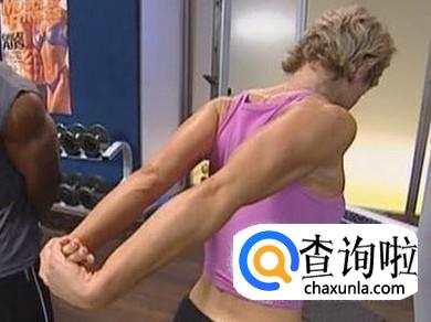 两臂翻握挺胸腰练习——背对墙在墙边站立,两臂内旋,举起翻握杠,然后尽力抬头挺胸,同时内收两臂。保持6到8秒再还原,并重复练习。