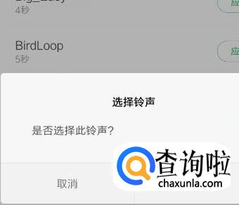 手指点一下右侧的应用,在屏幕底部弹出对话框,询问我们是否要用这首铃声。我们点一下确定。那么,此铃声即成为了手机的来电铃声了。