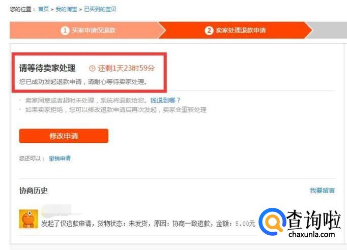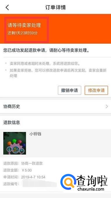 退款申请提交后,等待商家同意退款即可完成。