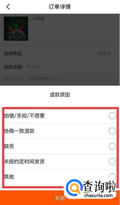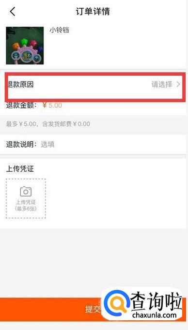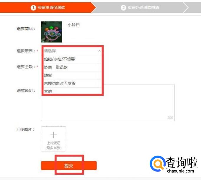 接着选择退款原因,选择退款金额,然后点击提交。