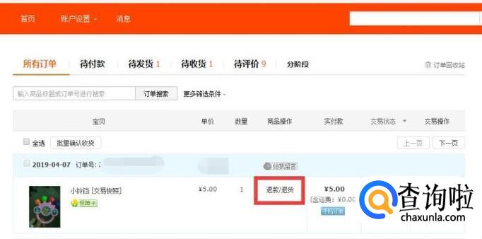 然后找到你要退款的订单,点击退款/退货。