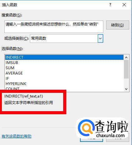 找到INDIRECT,并记下下方对于该函数的文字描述和公式,记错公式的话可能会得不到自己想要的引用文本。