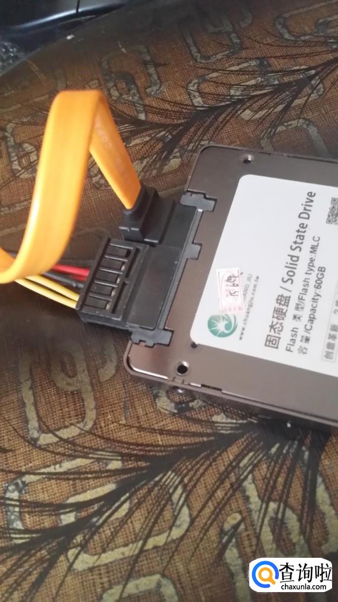 了解了以上这些,我们就好办了,把数据线的两头分别插到主板和硬盘上,再把电源线插上,为了看的明白我没把硬盘安装到机箱上,效果如图