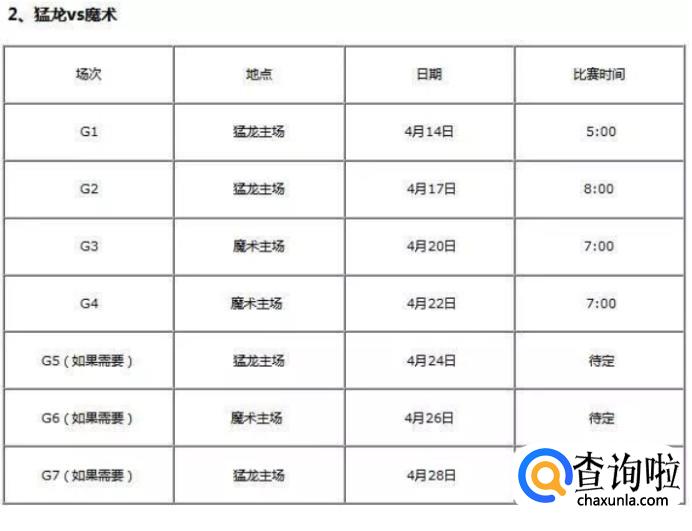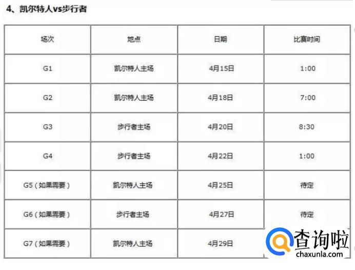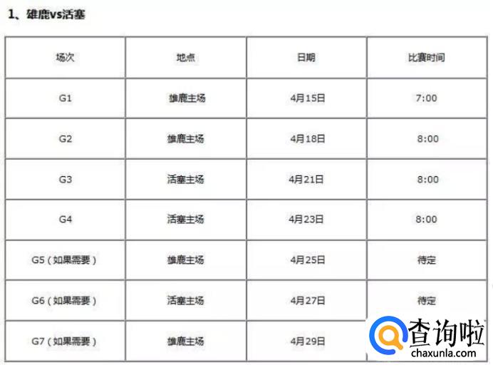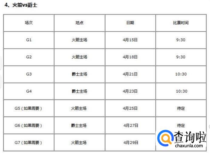 同样,前两场为开拓者主场,后两场为荷马雷霆主场,比赛具体时间如下图所示: