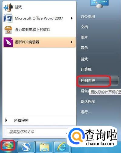 首先,我们点击开始菜单,然后打开控制面板。