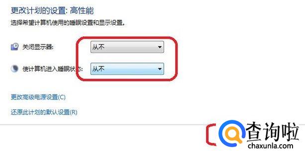 把两项都改成“从不”,如图所示,点击“保存修改”,就可以了。电脑不会再因为长时间待机而关机了(仅对台式机而言,笔记本没电了除外)。
