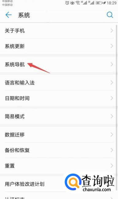 然后点击系统导航;