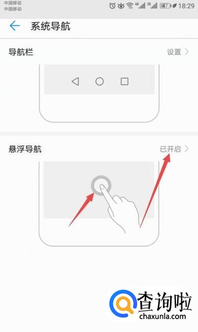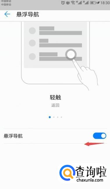 弹出的界面,将悬浮导航的开关向左滑动;