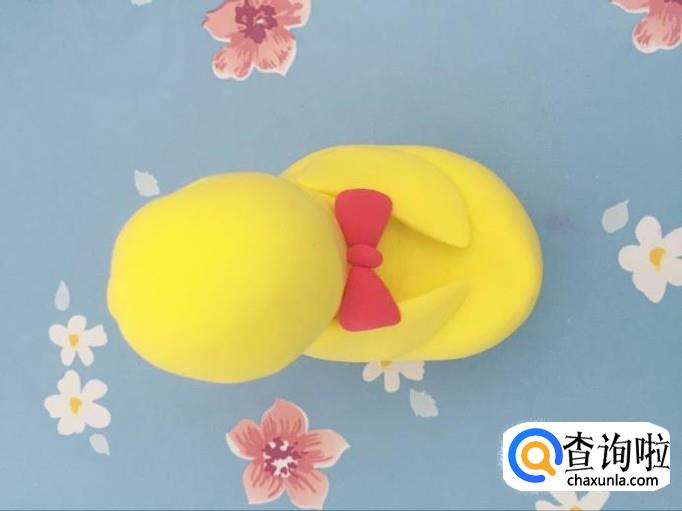 加鸭子的翅膀以及蝴蝶结,可以用很多手法来制作,可以捏好三角拼接,也可以用剪刀剪出形状,也可以用模具。