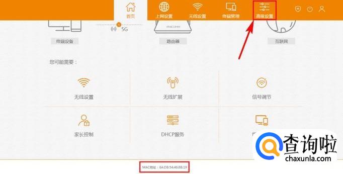 输入管理员密码,登录到管理页面,看到下方的MAC地址和刚才的一样,让我们再进一步一探究竟,点击高级设置;