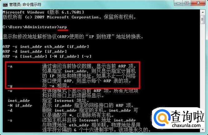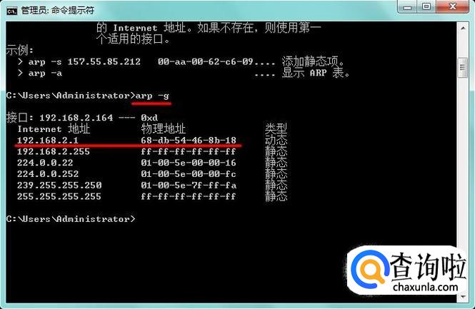 输入“arp”,回车,可以看到-a和-g都可以看物理地址(MAC地址),下面我们来试一试;