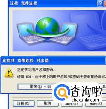 点击桌面上的【宽带连接】,输入了【用户名】和【密码】之后,显示【691错误代码】,这就说明你的用户名或者密码是错误的,遇到这种情况打电话给运营商客服修改密码就可以了。如果出现其他的代码,也是说明你的电脑有问题的,这样就最好在搜狗里面查询一下该代码的含义,然后再对症下药哦。