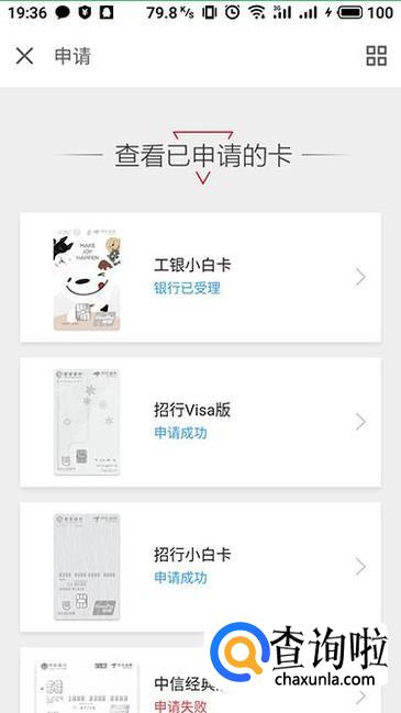 进入办卡进度界面,即可查看到自己申请的信用卡的审核进度。