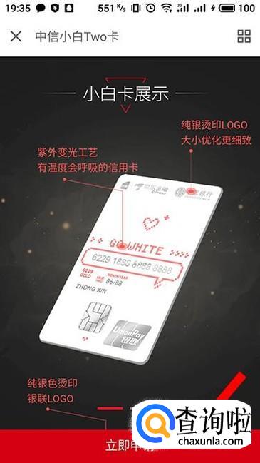 点击立即办卡之后进入介绍界面,阅读相关展示信息,点击“立即申请”