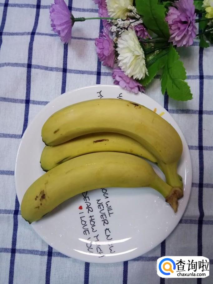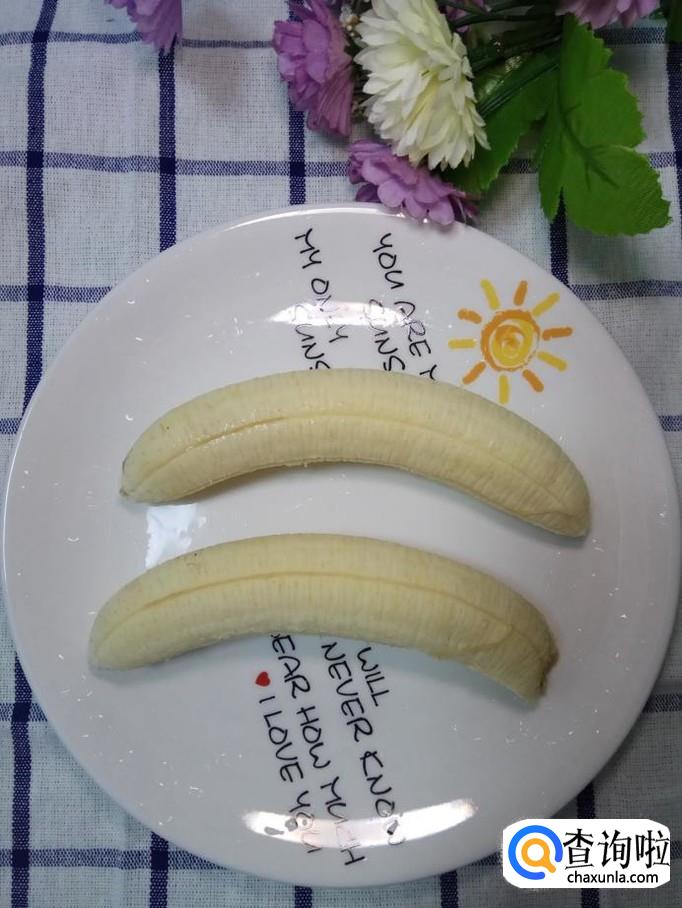准备适量香蕉,去皮,放入盘中备用。