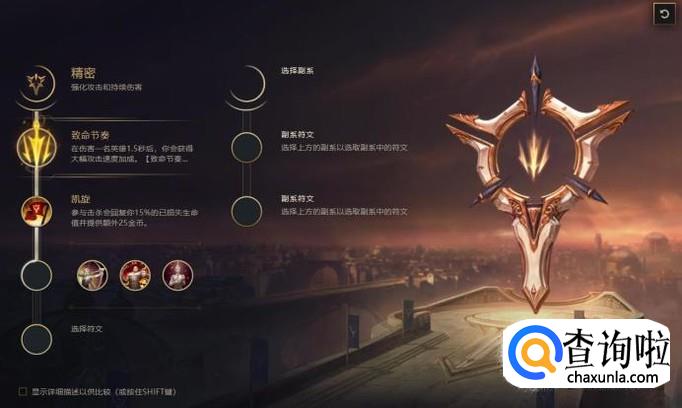 然后选择强攻和凯旋,作为AD英雄攻击速度快,连续平A3下就会触发强攻效果,能快速打出更多伤害,而凯旋参与击杀会回复你15%的已损失生命值,从而增加寒冰的保命几率