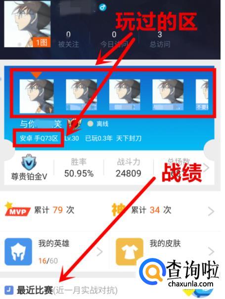 在【我的】页面会显示以前玩过的所有区,点击头像即可切换。显示玩过的区的同时还可以显示注册时间,大区战绩等信息。