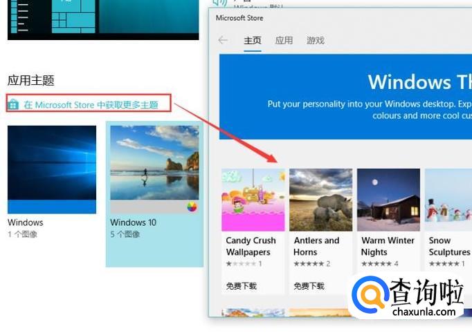 最后如果你嫌主题少的话可以进入主题应用商店进行主题下载,如下图所示