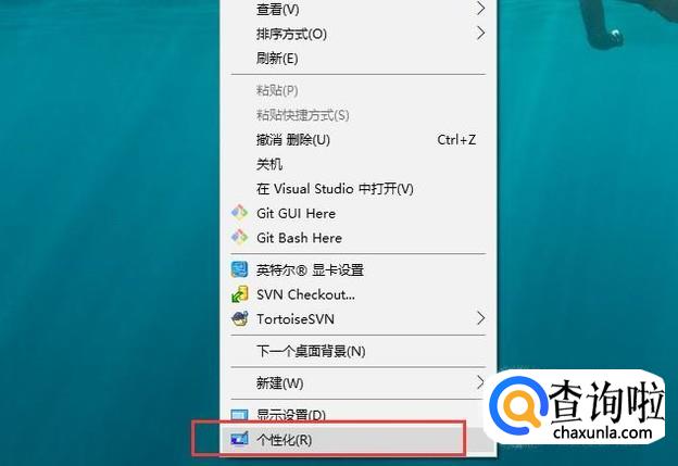 首先在桌面上右键单击选择个性化,如下图所示