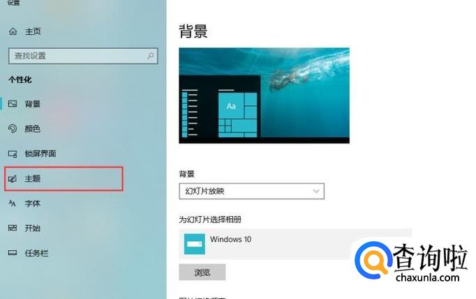 然后在弹出的设置界面点击左侧的主题菜单,如下图所示