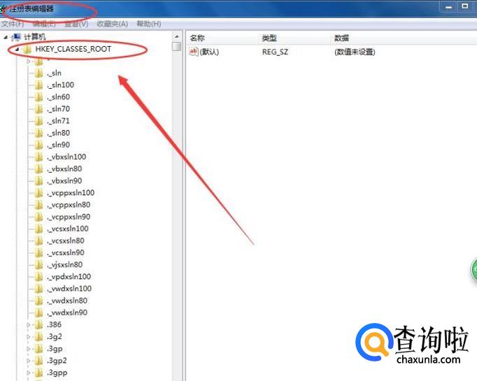 会弹出【注册表编辑器】窗口,选择【HKEY_CLASSES_ROOT】文件夹,如下图所示: