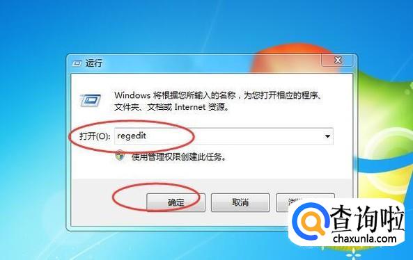 打开运行窗口,然后在输入框中输入【regedit】,点击【确定】按钮,如下图所示: