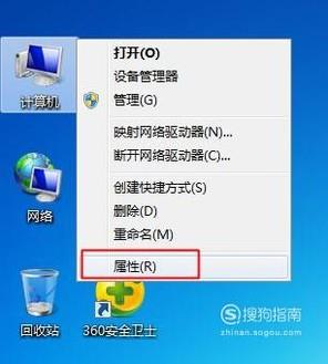 1、在桌面上右键计算机—属性;