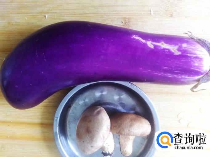 茄瓜1个,香菇2朵,蒜米、生抽水淀粉适量。