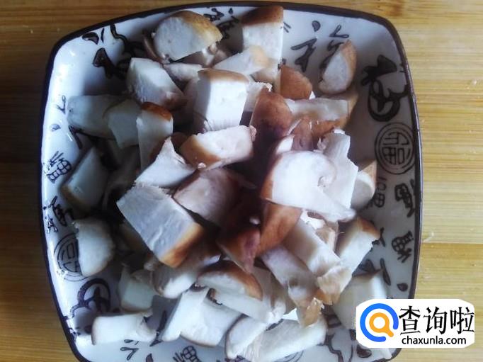 茄瓜、香菇准备好,然后把香菇清洗干净,切成小丁。