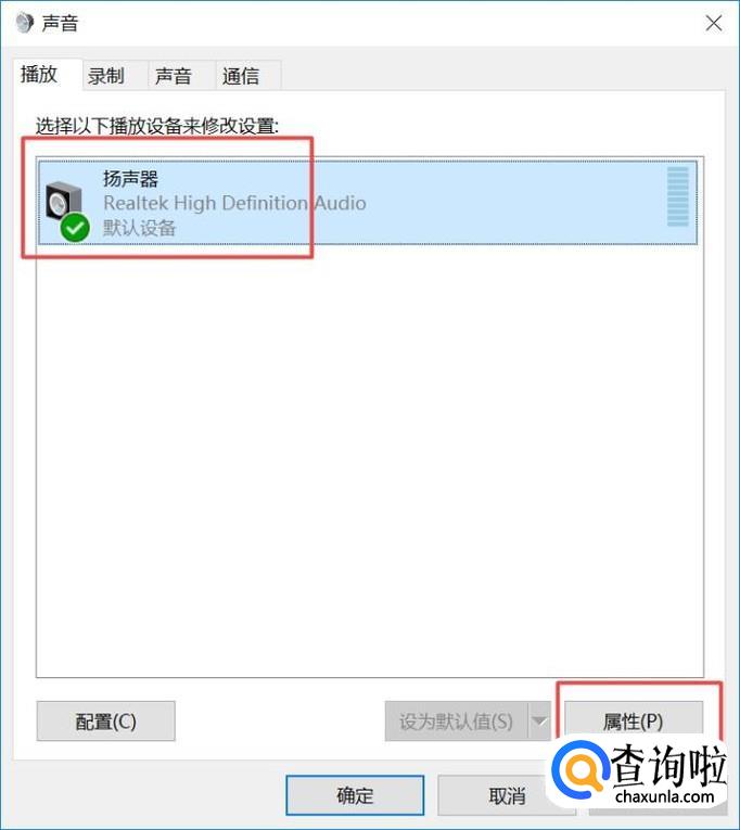弹出的界面,我们点击扬声器,点击属性;