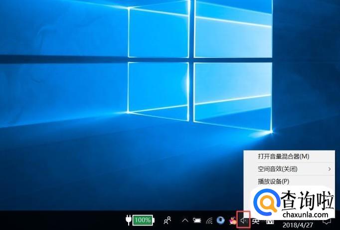 首先,我们右击电脑桌面左下角的声音图标,弹出的界面,我们点击声音;