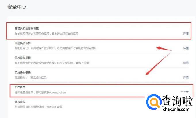 点击后会在右侧看到有:管理员和运营者设置、IP白名单两个按钮,这时可根据所需进行进一步的设置。
