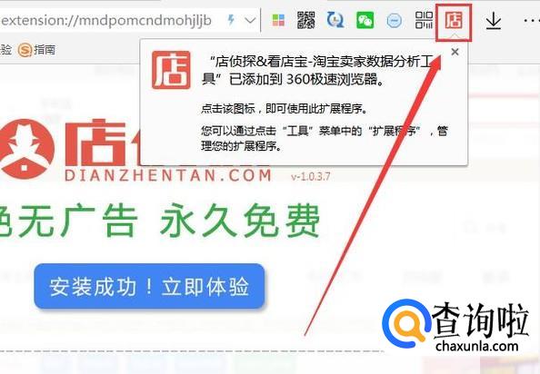 点击之后,店侦探插件就直接被安装到浏览器了,如图。