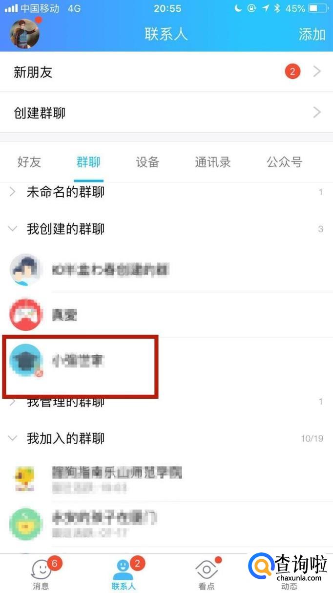 然后点击一个我们自己所创建的QQ群,如下图所示。