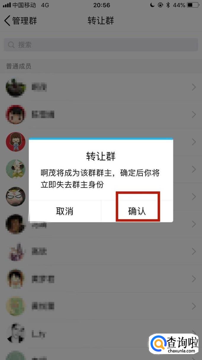 然后点击一个要转让群主的群成员,如下图所示。