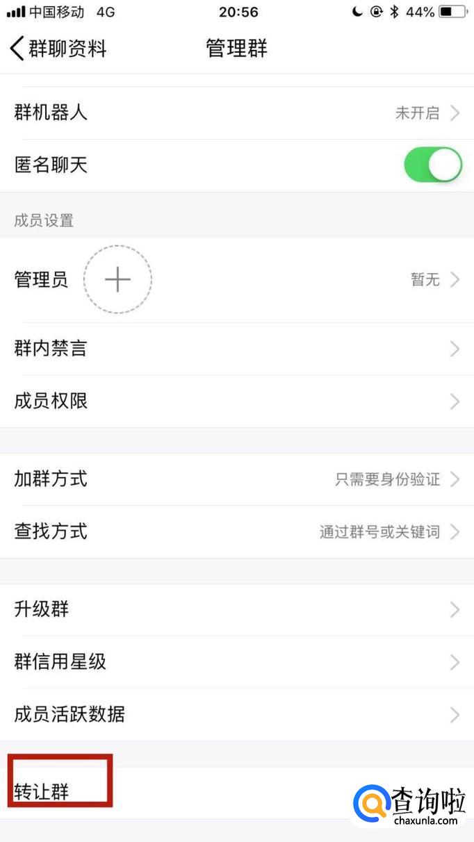 接着点击转让群,如下图所示。