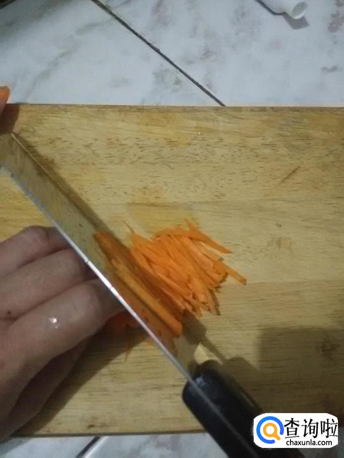 要想切出均匀的胡萝卜丝,就要先切薄厚均匀的片,切丝时,下刀的轻重和距离要保持一致,切出的丝才均匀,下面就教大家怎么切均匀的胡萝卜丝。